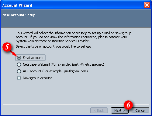 | 5)Select the 'Email account' option. |