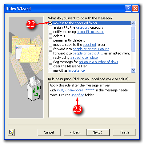 22)Put a tick in the 'move it to the specified folder' checkbox