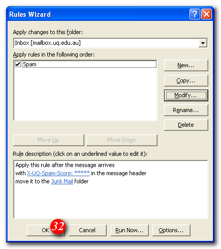 30)Put a tick in the 'Run this rule now on messages already in the "Inbox"' checkbox (optional)